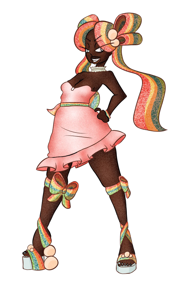 Finally, it’s not a sour strip without the sour. I added a layer of sour sanding on the entirety of her character, & I feel it really ties the whole design together.